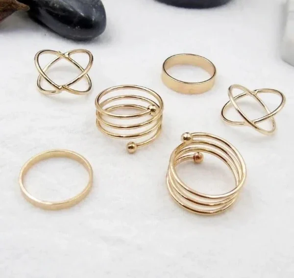 Product Name: Golden Knuckle Ring Set, Trendy Korean Style Ring Set (6 Pcs)